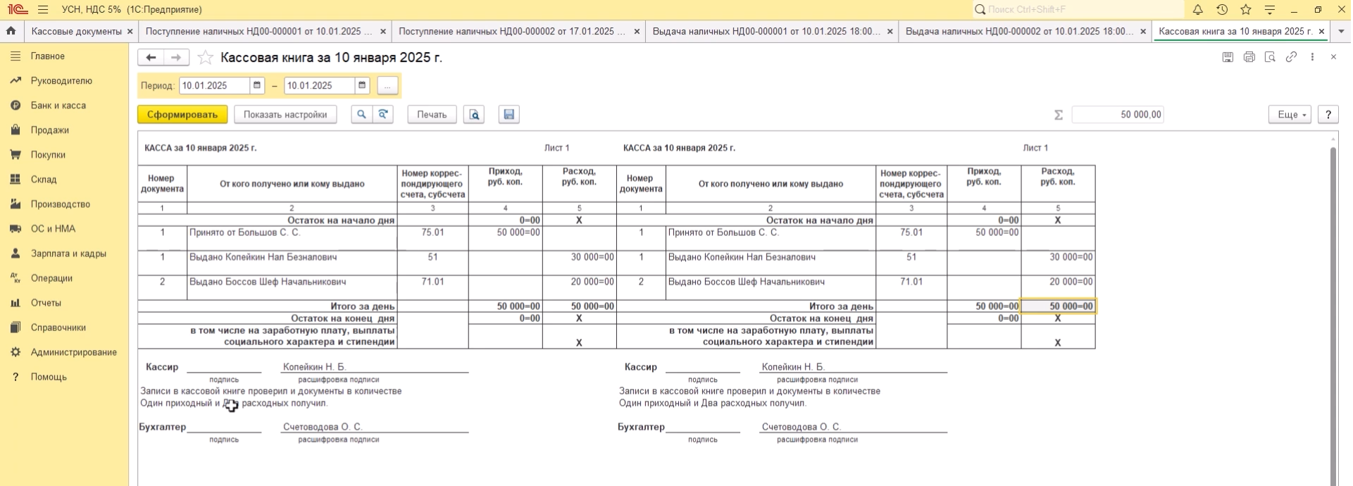 Вы не просто смотрите лекции — вы выполняете все действия в базе: настраиваете учётную политику, вводите документы, формируете КУДиР, рассчитываете налоги и закрываете месяц.